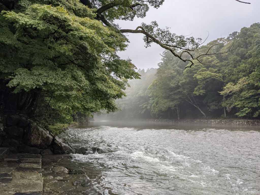 五十鈴川の支流の島地川に架かる風日祈宮橋を渡る時、