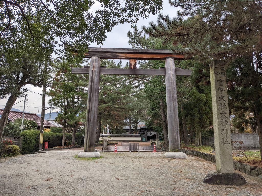 京都市内より油小路を南下し、京奈和道、木津から奈良坂を経て東大寺前を通り、 国道169号を更に南下、大神神社大鳥居に到着。 大鳥居横の駐車場に車を駐め、まずはお祓いの神様であるおんぱら社にお参りする。