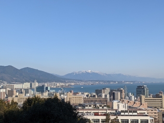 琵琶湖越しに比良山を望む。