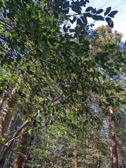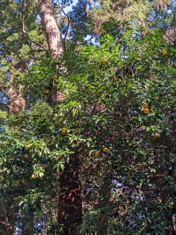 参道沿いに蜜柑がなっている。非時香菓(ときじくのかくのこのみ)。吉祥。