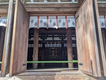 廊下の空間にかつて十一面観音像が祀られていた大御輪寺本堂、現・大神神社摂社若宮社