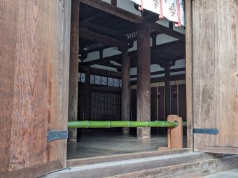 本堂向って左の廊下、観音堂に向う階段の入口は今は観音堂工事中のため閉鎖されているが、