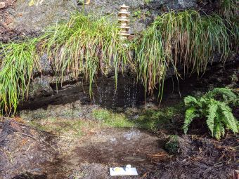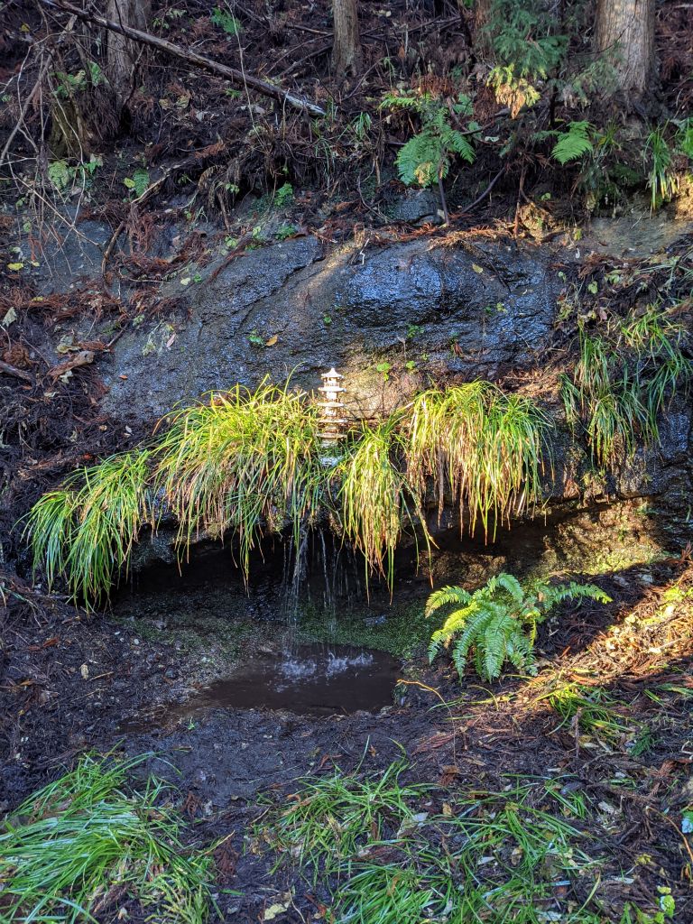 呼応して沢の水の音が高まり、その瞬間清水横の木から雪がドサドサッと落ちてきたとのこと。