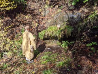 11月29日朝9時、本日の修法の立会人をお願いした友人のT氏に迎えを頼み実家を出発。 今回の修法の地、瀧山山麓の清水観音前の清水に向い、 20分ほどで観音堂への山道の入口の駐車場に到着します。 ここから清水へはさらに山道を10分ほど歩きます。 清水への山道は草が茂り倒木も何本かあり、その中を法衣姿で進みますが、 不思議なほどすいすいと足が進みます。